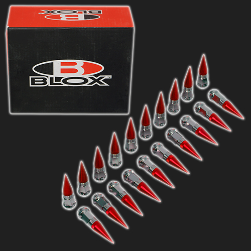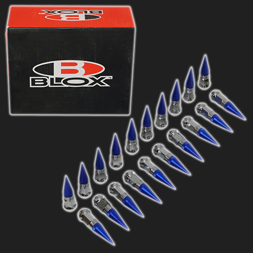 Колёсные гайки открытого типа с конусными цветными наконечниками (пиками) «BLOX» (реплика) для использования с колёсными шпильками и литыми дисками.