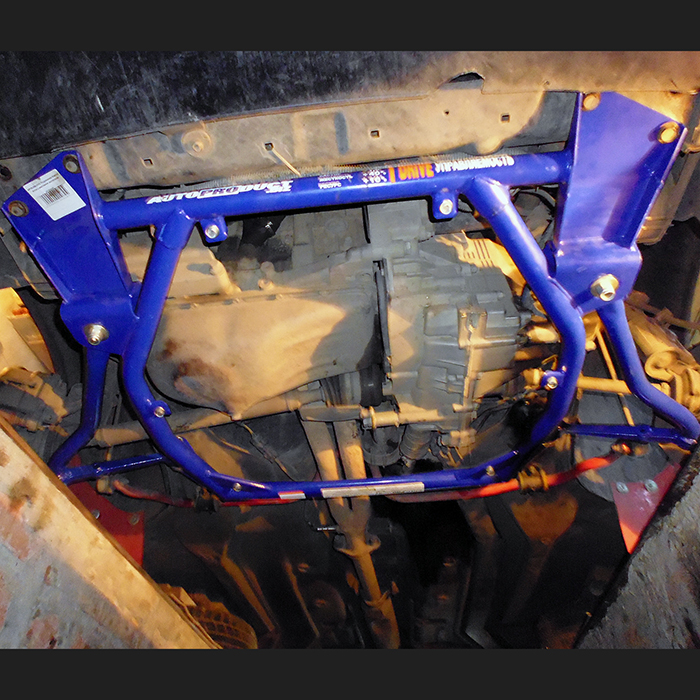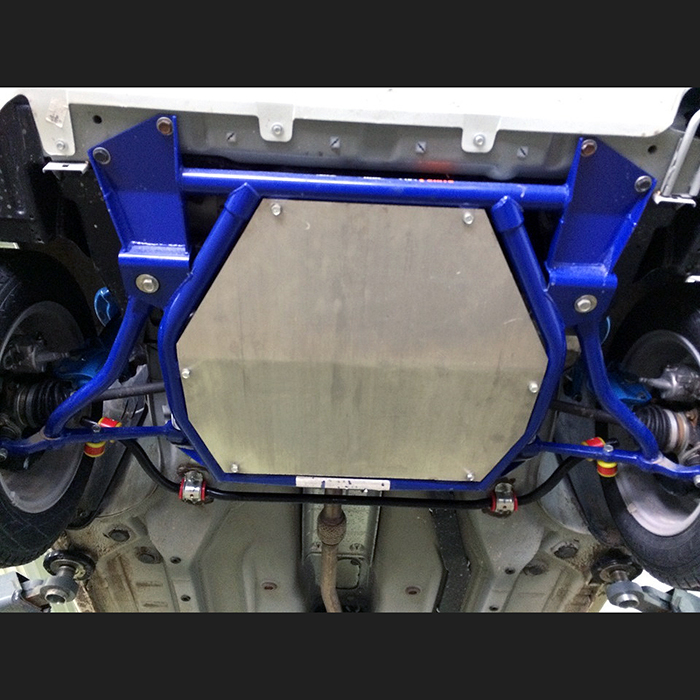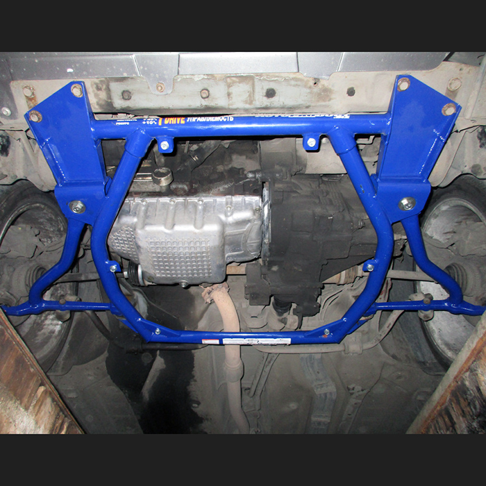 - защита силового агрегата от ударов снизу и увеличение жёсткости подрамника в сборе, точки крепления позволяют установить отдельную защиту картера: алюминиевую (4 мм) или стальную (2 мм).