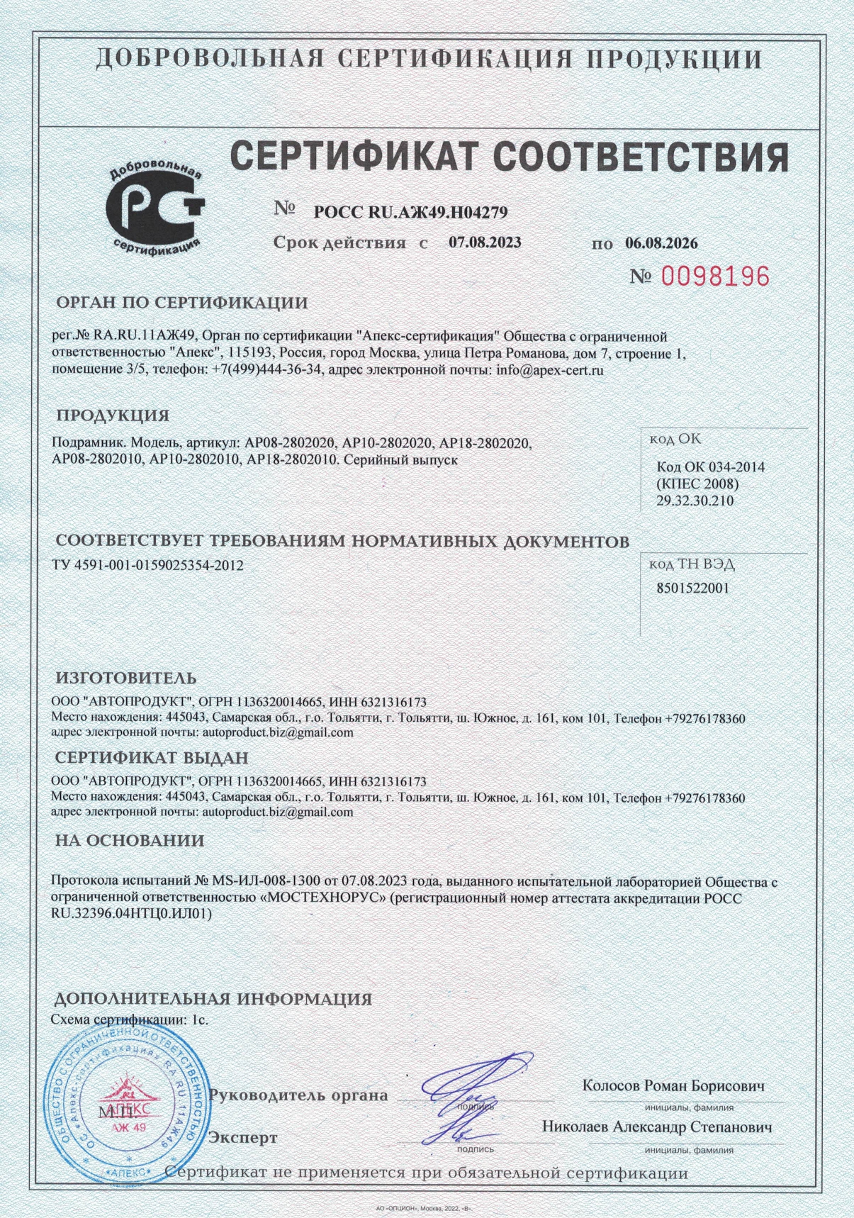 Конструкция подрамника защищена патентом, изделие сертифицировано.