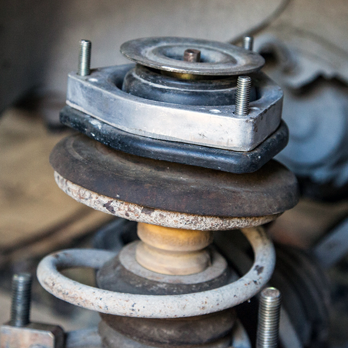 УСТАНОВКА: проставка устанавливается между опорой стойки передней подвески и кузовом автомобиля. При этом требуется заменить штатные шпильки крепления опоры на удлинённые из комплекта.