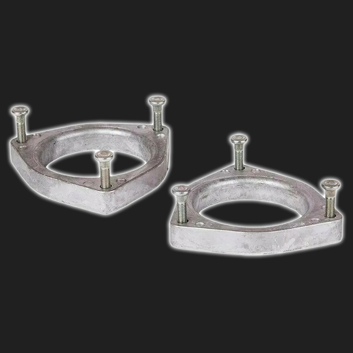 НАЗНАЧЕНИЕ: установка алюминиевых проставок между опорами стоек передней подвески и кузовом позволяет увеличить дорожный просвет автомобиля. Установка передних проставок (в комплексе с установкой проставок под задние амортизаторы) является простым, надёжным и бюджетным способом увеличить клиренс автомобиля, например, если машина часто передвигается по плохим дорогах или бездорожью.