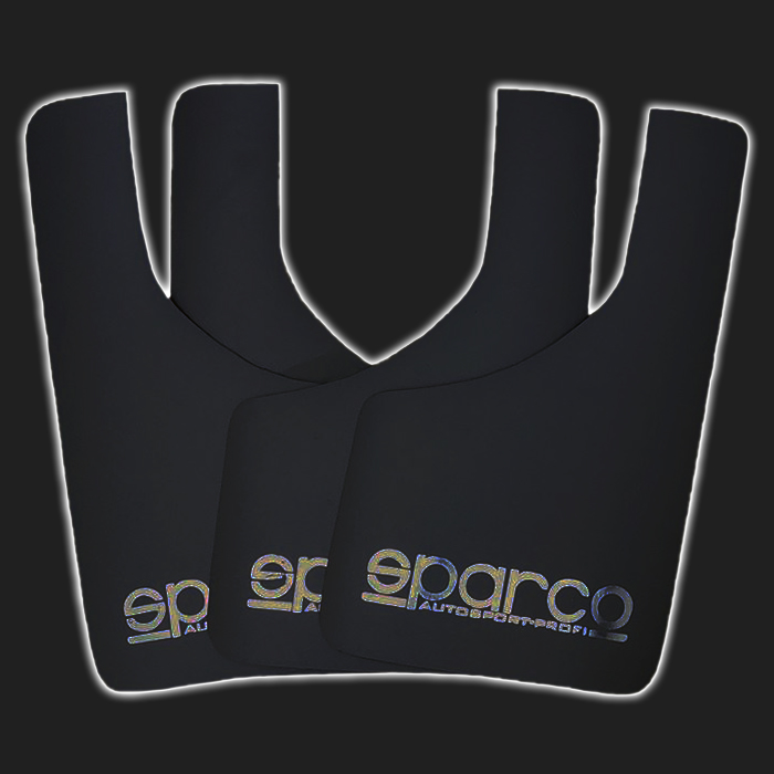 Брызговики SPARCO style эффективно защищают кузов автомобиля от потоков грязи и воды. С эстетической точки зрения являются завершением колёсной арки, добавляют автомобилю черты настоящего раллийного болида. Крепятся на заднюю часть крыла, сразу позади колеса. Резинопластиковые брызговики считаются самыми прочными и удобными для монтажа.