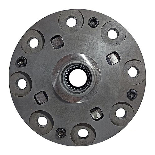 Дисковый самоблокирующийся дифференциал представляет собой симметричный дифференциал, в который добавлены два пакета фрикционных дисков для каждой полуоси (всего 12 дисков). Одна часть фрикционных дисков жёстко связана с корпусом дифференциала, другая часть - с полуосью.