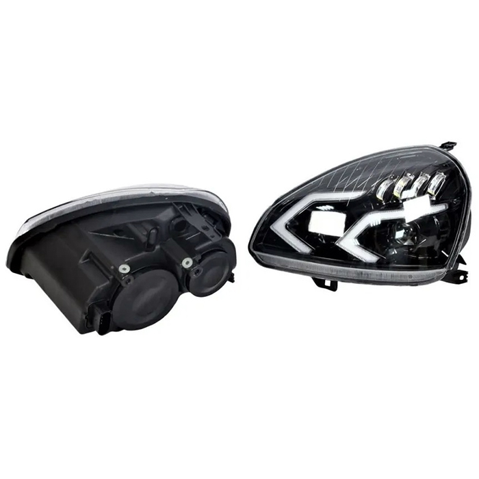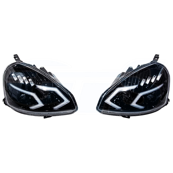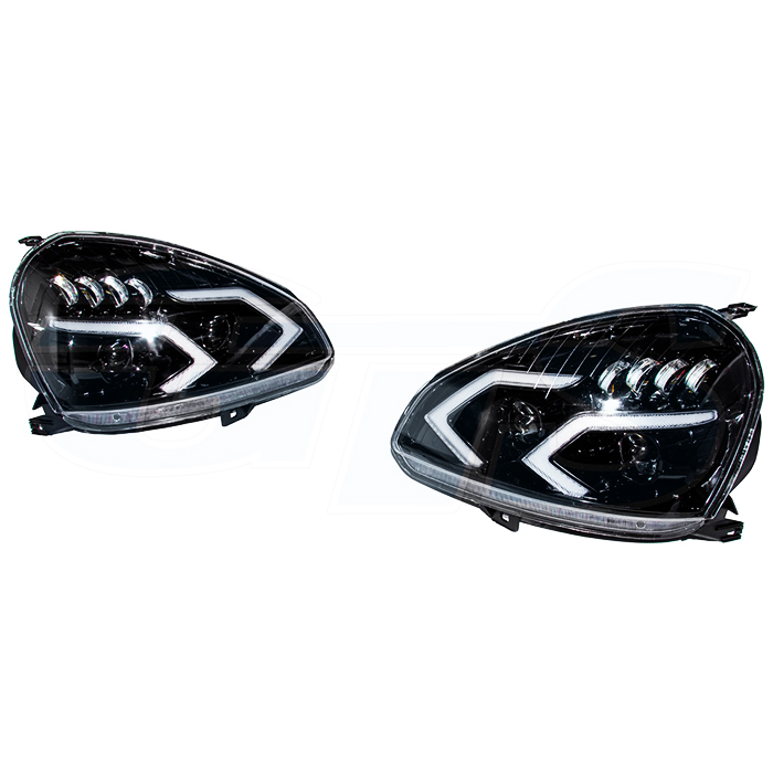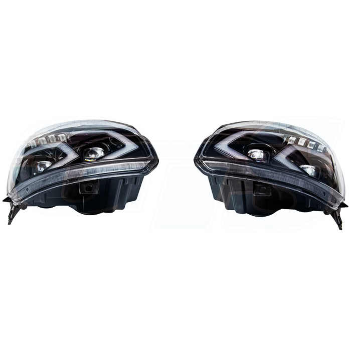 Каждая фара оснащена двумя светодиодными линзованными BI-LED модулями, 4-линзовыми светодиодными габаритами и ДХО-галочками в стиле оптики AMG с функцией динамических (бегающих) указателей поворотов.