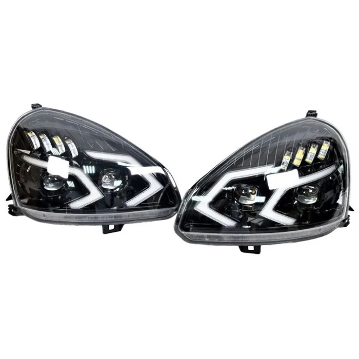 Фары с BI-LED линзами, с бегающими поворотниками и дневными ходовыми огнями (LED) в стиле Mercedes-AMG.