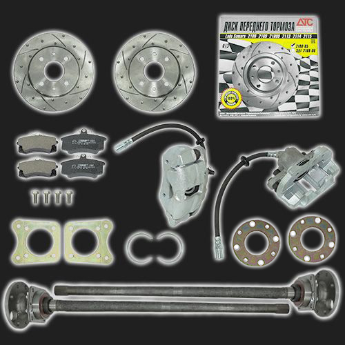Задние дисковые тормоза устанавливаются вместо штатных барабанных без доработок. Комплект содержит дистанционные шайбы толщиной 5 мм, которые устанавливаются между полуосью и тормозным диском и позволяют точно отцентровать тормозные диски в плоскости суппортов.