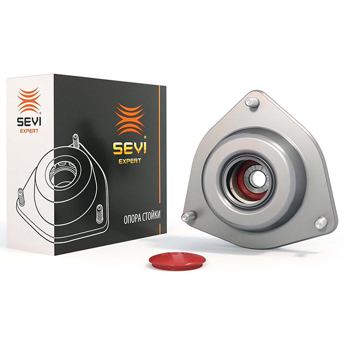Основными элементами опоры стойки передней подвески являются резиновый виброизолятор и подшипник качения. Поэтому, конструкция и физические свойства данных элементов определяют все эксплуатационные свойства опор, их ресурс, а также виброакустический комфорт автомобиля. Инженеры СЭВИ, понимая важность этих узлов в подвеске, доработали штатную конструкцию опор с учётом новейших достижений в области конструирования.