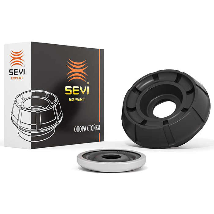 Резиновый виброизолятор является одним из основных элементов стойки передней подвески, определяющий её эксплуатационные свойства и виброакустический комфорт автомобиля. Инженеры компании «СЭВИ», понимая важность этого узла в подвеске, доработали штатную конструкцию опор с учётом их эксплуатации в дорожных условиях России.