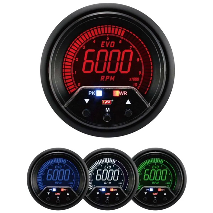 Прибор AUTO GAUGE тахометр /60 мм/ EVO Style (цифровой), тонированное стекло, 4-цветная подсветка, 0-10000 RPM