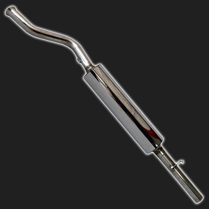 Тихий прямоточный глушитель «RZVS» из нержавеющей стали. Возможно изготовление как с прямой выходной трубой, так и со скошенным вниз выходом.