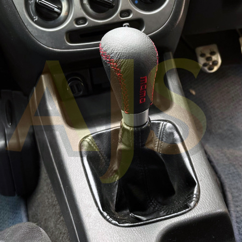 Ручка КПП универсальная MOMO style /чёрная кожа, с красной прострочкой/