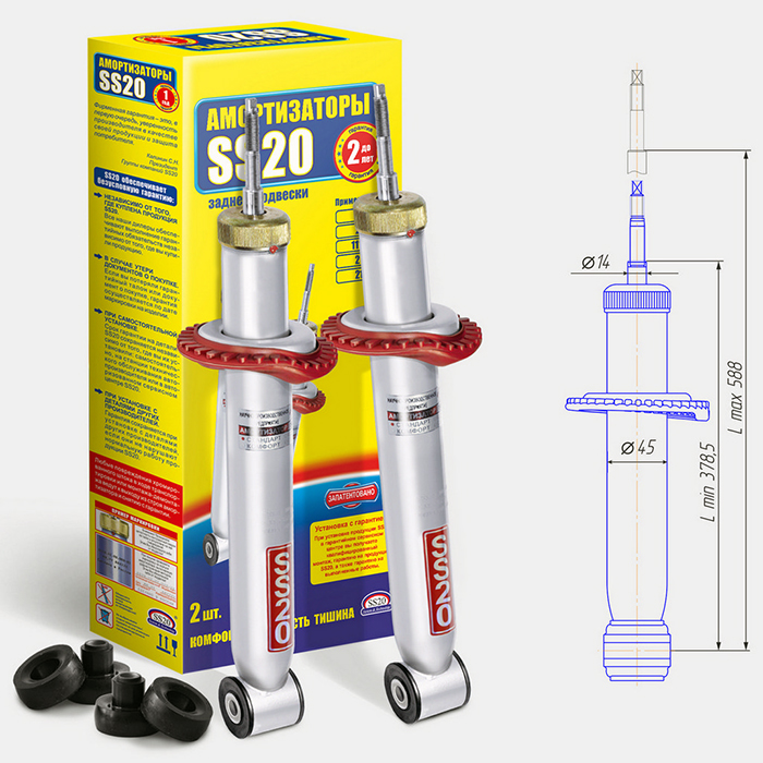 Амортизаторы SS20, выпускаемые для семейства ВАЗ, имеют следующие модификации по степени жёсткости: «Стандарт», «Комфорт-ОПТИМА», «Шоссе» и «Спорт», что позволяет каждому водителю выбрать наилучшее сочетание комфорта и безопасности. Все амортизаторы SS20 телескопические, двухтрубной конструкции. При производстве передних стоек и задних амортизаторов SS20 используются комплектующие и материалы только самого высокого качества, со 100% проверкой.
