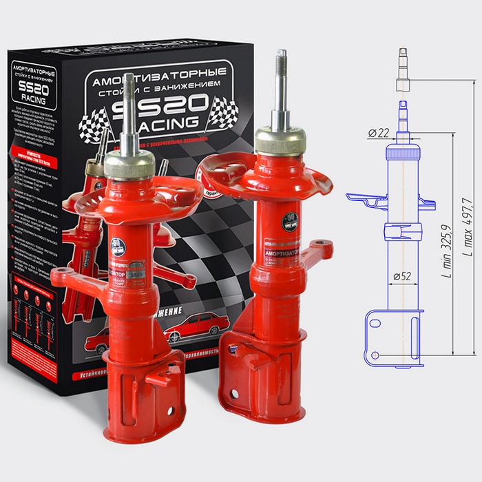 Заниженные (спортивные) стойки SS20 Racing - это новая серия продукции «SS20» для водителей, предпочитающих быстрый и активный стиль вождения, которым важен не только внешний вид автомобиля, но и правильная и стабильная работа подвески при занижении клиренса.