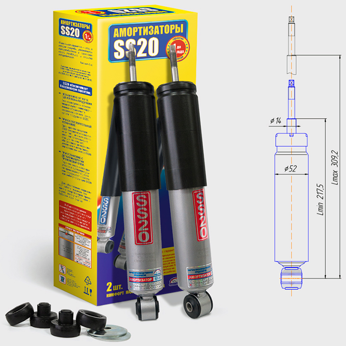 Корпус амортизаторов на «классику» производства «SS20» увеличен по сравнению со стандартными амортизаторами, что позволило не только увеличить объём масла, но и применить поршни большего диаметра, что существенно снизило удельные нагрузки на элементы клапанной системы и увеличило их ресурс. Применены поршни с «юбочкой», обеспечивающие отличное уплотнение и стабильность характеристик амортизатора при увеличенном сроке эксплуатации. Нижний и верхний сайлентблоки переднего амортизатора имеют оригинальную конструкцию, превосходящую заводской амортизатор по надёжности, и демпфирующей способности.
