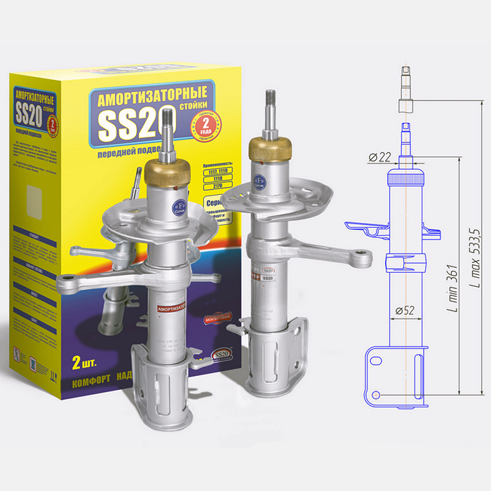 Стойки SS20, выпускаемые для семейства ВАЗ, имеют следующие модификации по степени жёсткости: «Стандарт», «Комфорт-ОПТИМА», «Шоссе» и «Спорт», что позволяет каждому водителю выбрать наилучшее сочетание комфорта и безопасности. Все стойки SS20 телескопические, двухтрубной конструкции. При производстве передних стоек и задних амортизаторов SS20 используются комплектующие и материалы только самого высокого качества, со 100% проверкой.