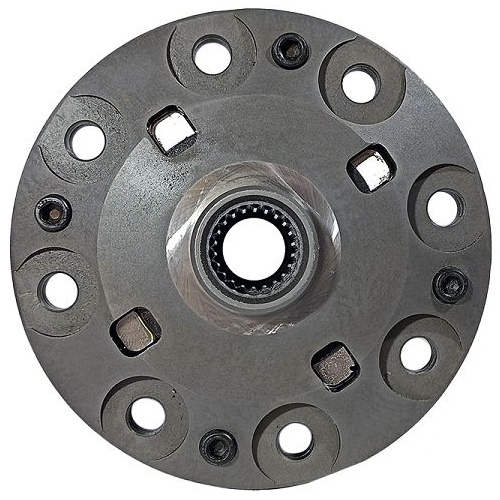 Дисковый самоблокирующийся дифференциал представляет собой симметричный дифференциал, в который добавлены два пакетов фрикционных дисков для каждой полуоси (всего 8 дисков). Одна часть фрикционных дисков жёстко связана с корпусом дифференциала, другая часть - с полуосью.